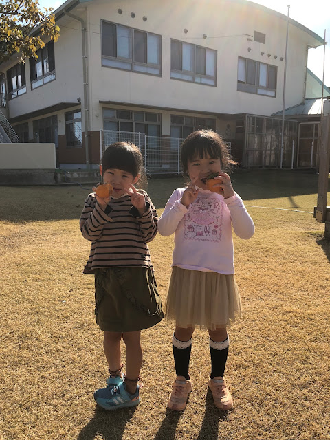 保育園の広場にある柿の木もおいしそうな実をたくさんつけていました。